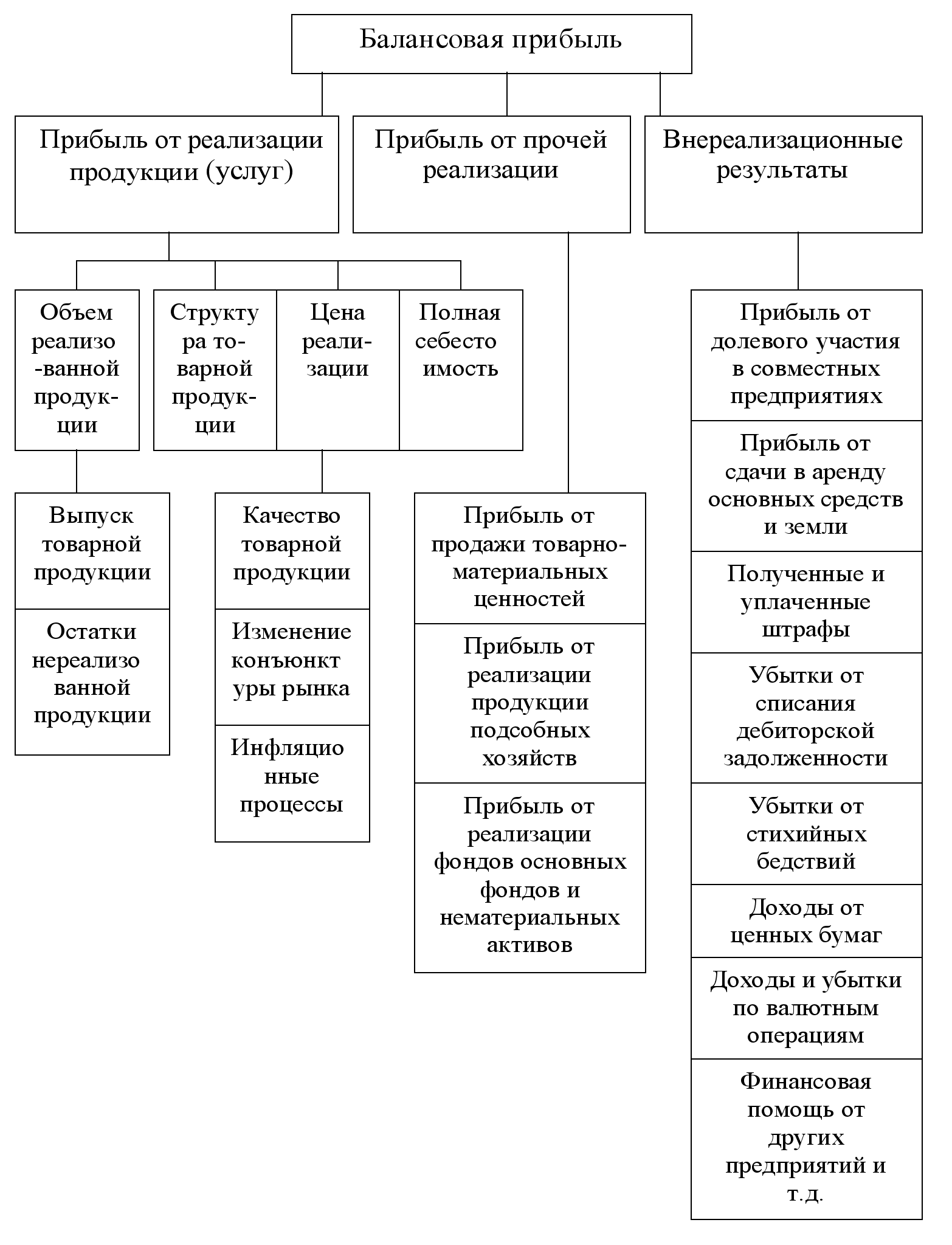 В свою очередь прибыль от реализации продукции (товаров, работ, услуг) зависит от следующих факторов: