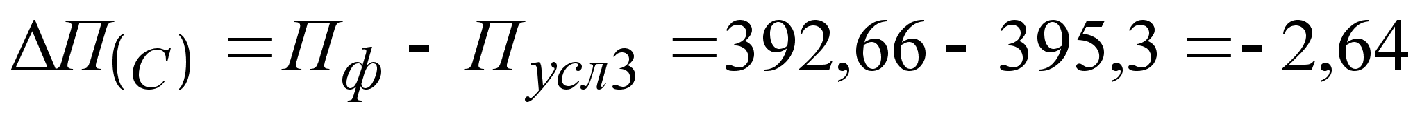 Влияние изменения полной себестоимости на сумму прибыли (П(С)) устанавливается сравнением фактической себестоимости реализованной продукции в отчетном году с условным показателем, рассчитываемым в ценах базового года: