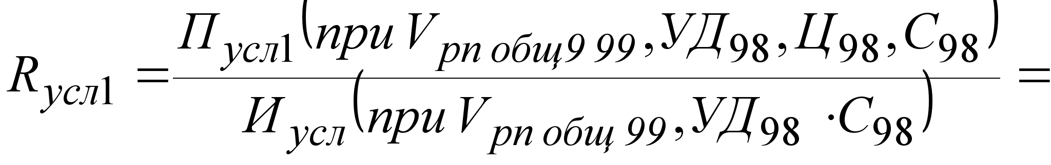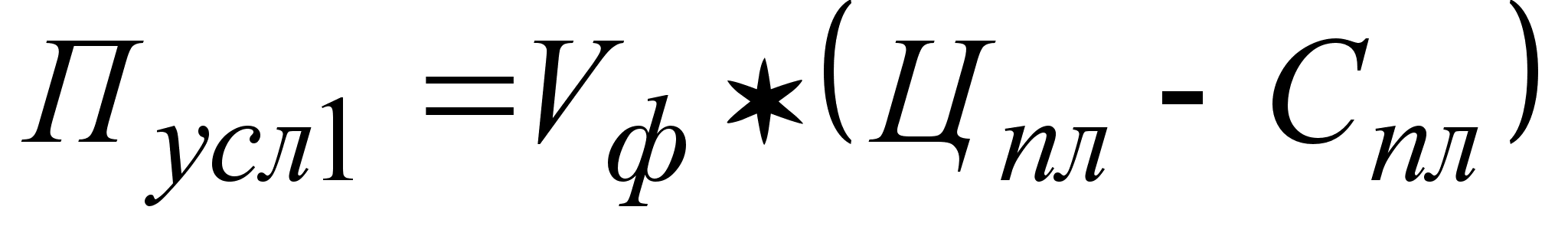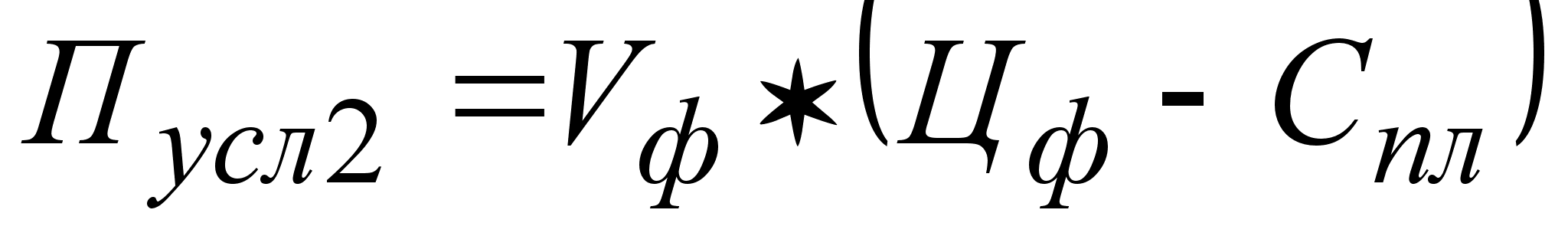 где Впл, Вф, Вусл - выручка от реализации без НДС, соответственно, плановая, фактическая и условная; Спл, Сф, Сусл - себестоимость; П - прибыль; Крп - процент выполнения плана по количеству реализованной продукции.