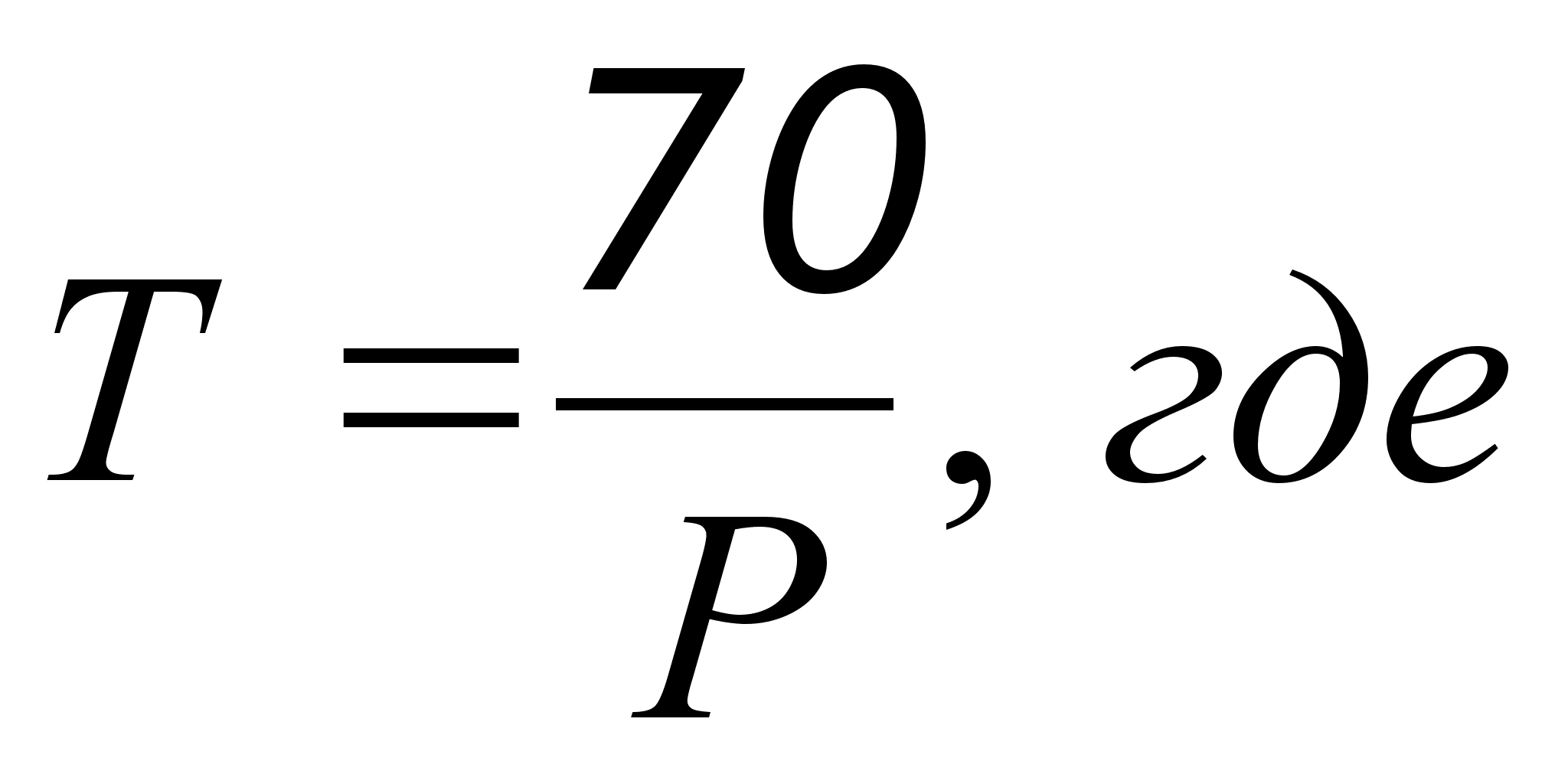 Так называемое “правило величины 70“ дает нам другую возможность количественно измерить инфляцию. Точнее говоря, оно позволяет быстро подсчитать количество лет, необходимых для удвоения уровня цен. Надо только разделить число 70 на ежегодный уровень инфляции: