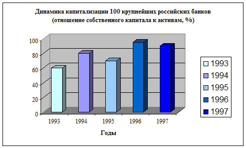Вследствие высоких кредитных рисков российские банки до сих пор предпочитали заниматься не столько депозитно-кредитными, сколько спекулятивными операциями. Главные направления активности банков – торговля валютой, операции с акциями, государственными ценными бумагами. Филиальная сеть отечественных банков немногочисленна. Но зато в банковской системе России представлены многие крупнейшие иностранные банки, отличающиеся большой активностью на отечественном рынке финансовых услуг. Среди действующих банков всем критериям финансовой устойчивости отвечают около 35%. Примерно столько же испытывают некоторые проблемы. Всего с 1991 г. лицензии были отозваны у 939 кредитных организаций, а решение о ликвидации принято по 648 кредитным организациям.[9] По размеру капитала и величине аккумулированных активов российские банки занимают очень скромные позиции в мире. Совокупный собственный капитал 200 крупнейших российских банков (100 млрд. руб.) меньше собственного капитала любого банка из первой двадцатки крупнейших банков мира. Такая ситуация объясняется недостаточной концентрацией капиталов в российском банковском секторе.