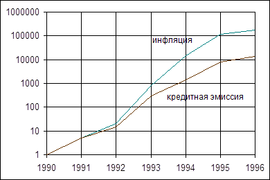 Рис. 5. Беларусь: кредитная эмиссия и инфляция Дальнейшее увеличение кредитной массы просто еще более усугубляет инфляцию. Увеличение кредитной массы или чистых внутренних активов – это практически единственный источник расширения денежной массы в банковской системе Беларуси, учитывая, что чистые активы в иностранной валюте уменьшаются в результате роста дефицита торговли и платежного баланса. Как следует из рисунка 5, как только расширение кредитной массы замедлилось после начального этапа 1995 года, ежемесячные темпы инфляции значительно снизились. Беларусь не является исключением из этого универсального экономического закона, который гласит, что общее расширение кредитной массы, опережающее рост реального производства, ведет к увеличению инфляции. Именно дисциплина правительства в плане контроля над расширением кредитной массы, а не фиксированный обменный курс, привела к снижению инфляции после начального этапа 1995 года. Между кредитами, денежной массой, инфляцией и обменными курсами существует тесная взаимосвязь, но не следует поворачивать наоборот цепочку причинно–следственных связей. Низкий уровень инфляции и стабильный обменный курс являются результатом монетарной дисциплины. С целью поддержания стабильности цен и обменного курса необходим контроль за расширением кредитной массы. Прилагаемые усилия, такие как постановления о контроле над ценами, сохранению искусственного коридора обменного курса и регулированию доступа к иностранной валюте, являются косвенной попыткой решить это уравнение в обратную сторону. Это меры воздействия на симптомы, а не на причины. Как таковые, они обречены на провал. Распределение кредитных ресурсов по секторам экономики. Из кредитных ресурсов, предоставленных предприятиям, большая часть была направлена в сельское хозяйство. На самом деле, в то время как доля кредитов сельскому хозяйству возросла с 7% до 28% от общей кредитной массы в период с 1992 по 1994 годы, доля сельского хозяйства в ВВП снизилась с 2270 до 1370 млрд. руб. Валовой объем кредитов сельскому хозяйству почти удвоился в период между последним кварталом 1995 года и первым кварталом 1996 года, что стало возможным благодаря выделению центральным банком рефинансирующих кредитов коммерческим банкам, в основном Белагропромбанку. Из кредитов, выданных Национальным банком на конец первого квартала 1996 года, 75% были целевые кредиты, из них 60% направлены в сельское хозяйство (доля которого в ВВП в настоящий момент – лишь 12%). Резкий контраст этому составляет промышленность, на долю которой пришлось менее четырех процентов выданных кредитов, несмотря на то, что доля промышленности в ВВП была в среднем на уровне 30–35% в течение этого периода. Очень важно отметить, что дефицит реальных кредитных ресурсов, испытываемый предпринимателями в сельском хозяйстве и промышленности, невозможно преодолеть путем простого увеличения кредитной массы. Расширение кредитования убыточных предприятий обречено на провал само по себе. Во–первых, инфляция, порождаемая расширением кредитной массы, снижает ее реальную стоимость. В результате этого, несмотря на огромную эмиссию кредитных ресурсов в течение последних пяти или шести лет, реальный объем кредитных ресурсов для предприятий в реальности уменьшился. Во–вторых, так как основным следстви