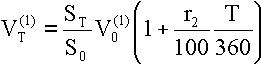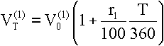 Новые выпуски векселей осуществляются на регулярных еженедельных аукционах, на которых устанавливается начальная дисконтная процентная ставка векселя. В течение периода снижающихся процентных ставок рыночная стоимость векселя растет, а при возрастании процентных ставок - падает. Изменение процентной ставки не имеет никакого значения для инвестора, который собирается держать вексель до наступления срока платежа. В качестве базисного актива для финансовых фьючерсов и опционов используется, например, 13-недельный казначейский вексель США с номинальной стоимостью в один миллион долларов. Текущая стоимость векселя рассчитывается по формуле