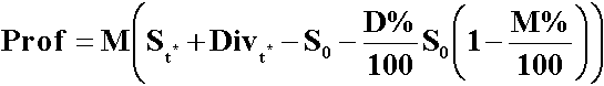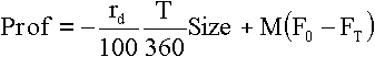 Здесь предполагается, что срок депозита и срок до поставки фьючерсного контракта совпадают. На практике очень сложно полностью закрыть арбитраж с использованием фьючерсных контрактов из-за их высокой стандартизации. По большому счету арбитражисты не заинтерисованы в физической поставке и будут стремиться закрыть позиции оффсетными сделками по мере того, как рыночная ситуация позволит им реализовать свою прибыль подобным путем. Закрытие фьючерсной позиции должно сопровождаться новыми компенсирующими сделками на рынке наличности, чтобы сохранить прибыль от арбитража до наступления срока расчетов по первоначальным сделкам, что опять потребует расходов. Прибыли/убытки, полученные арбитражером по окончании хеджируемой финансовой операции, вычисляются по формуле