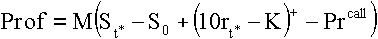 В данной записи величина e-rT(ST-K)+