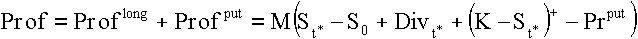 При хеджировании длинной позиции владельца акций покупкой опциона продажи прибыли/убытки от полного хеджирования рассчитываются по формуле