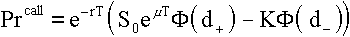 Знаменитая формула Блэка-Сколеса расчета премии стандартного опциона купли европейского стиля, полученная для такой модели, записывается в виде