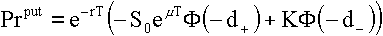актива S0, волатильности Премия опциона продажи может быть записана в аналогичном виде: