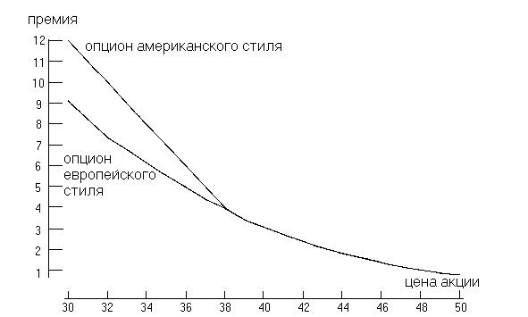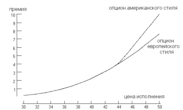 американского и европейского стиля от цены исполнения. Как видно из рисунка,