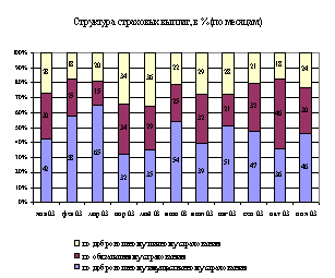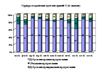 Отрасль "страхование жизни". За 11 месяцев 2003 года объем страховых премий, собранных по классу "страхование жизни" составляет 370,0 млн. тенге ($2,5 млн.), что в 2 раза больше чем на аналогичную дату прошлого года. Доля страховых премий, собранных по отрасли "страхование жизни" на отчетную дату составляет 1,4% против 0,9% на 1 декабря 2002 года (по итогам 2002 года данная доля составляла 0,8%). Отрасль "общее страхование". Объем страховых премий, собранных за период 11-ти месяцев текущего года по отрасли "общее страхование" составляет 25,8 млрд. тенге ($176,0 млн.), что 32,5% больше чем за аналогичный период 2002 года. Среди классов страхования, занимающих основные доли в отрасли "общее страхование" можно отметить следующие: ð класс "страхование имущества" - 28% (7,3 млрд. тенге); ð класс "страхование гражданско-правовой ответственности за причинение вреда" – 19,9% (5,1 млрд. тенге); ð класс "страхование грузов" – 11,3% (2,9 млрд. тенге); ð класс "страхование гражданско-правовая ответственность владельцев транспортных средств" – 9,2% (2,4 млрд. тенге). По состоянию на 1 декабря 2003 года по сравнению с предыдущими месяцами года произошли некоторые изменения среди 5-ти страховых компаний – лидеров по сбору страховых премий, на долю которых приходится 64.2% совокупной страховой премии. Среди них: ЗАО "Казахинстрах" – 20,1%, ОАО СК "БТА" – 15.4%, ОАО "Нефтяная страховая компания" – 10,3%, ОАО СК "Казкоммерц - Полис" - 9,5%, СК "Евразия" – 8,9%. Доля страховых премий, собранных страховыми компаниями с иностранным участием по состоянию на 1.12.2003 года составляет 29,1% (7.6 млрд. тенге). Объем страховых премий, переданных в перестрахование составляет 15,2 млрд. тенге или 58% от совокупного объема страховых премий. При этом в перестрахование нерезидентам передано 50,0% от совокупного объема страховых премий. Перестрахование млн. тенге