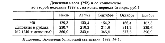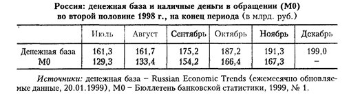 1998 г. (см. табл. 8), все денежные агрегаты заметно сократились. Денежная база