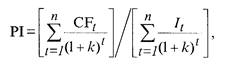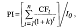 где CFt - денежные поступления в t-м году, которые будут получены благодаря этим инвестициям; Iо – первоначальные инвестиции. Если предполагаются длительные затраты и длительная отдача, формула для определения PI имеет такой вид: