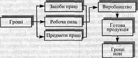 Рис. 1.2. Схема кругообігу коштів підприємства Для того, щоб розпочати виробництво, необхідні гроші (стадія фінансування). За ці гроші купуються необхідні складові виробничого процесу — машини, устаткування, сировина, матеріали, приймаються на роботу робітники (стадія купівлі засобів і предметів праці, прийом на роботу і підготовка відповідних робітників). Далі здійснюється безпосередньо виробничий процес (стадія виробництва продукції і формування її собівартості). Коли вироблено готову продукцію, її продають (стадія реалізації товару). Після продажу продукції отримують гроші, але не ті, які були на стадії фінансування, а гроші нові. Тут відбувається процес формування фінансових результатів підприємства, їх розподіл. Одна частина спрямовується на подальший розвиток виробництва, інша — на накопичення і т. д., залежно від того, яке підприємство, якої форми власності, яка його основна діяльність. Ці процедури можна віднести до стадії формування і розподілу фінансових результатів. З усіх видів ресурсів першочергове значення мають фінансові ресурси. Фінансовий аналіз являє собою систему способів накопичення, опрацювання, трансформації та використання інформації фінансового характеру з метою забезпечення життєдіяльності господарюючого суб'єкта в умовах дії ринку та панування конкуренції. Зміст і цільовий напрям фінансового аналізу полягає в оцінюванні результатів діяльності та фінансового стану господарюючого суб'єкта, у виявленні можливостей підвищення ефективності його функціонування за допомогою раціональної фінансової політики. Щоб вижити в умовах ринкової економіки і не допустити банкрутства господарюючого суб'єкта, треба добре знати, як управляти фінансовими ресурсами і якою повинна бути фінансова політика. Кожна наука має свій предмет. Предмет науки відповідає на запитання: «Що вивчає ця наука?». Предметом науки «фінансовий аналіз» є фінансові відносини, фінансові ресурси та їх потоки в єдиному виробничо-торговельному процесі. Фінанси є суттєвим складовим елементом системи управління, кровотворною системою будь-якого бізнесу, яка забезпечує успішне існування підприємницької діяльності. Рух коштів, його швидкість і масштаби визначають ефективність фінансової системи. З руху коштів розпочинається і рухом коштів закінчується кругообіг засобів господарюючого суб'єкта, оборот всього капіталу підприємства (рис. 1.2). Головна роль тут належить фінансовим ресурсам. Фінанси на рівні підприємства виражають грошові відносини, пов'язані з первинним розподілом вартості суспільного продукту, формуванням і використанням грошових доходів та децентралізованих фондів . Спочатку на підприємстві грошові засоби формуються в процесі утворення статутного фонду. Далі вони інвестуються для забезпечення, розширення і розвитку виробництва, для забезпечення фінансово-господарської діяльності господарюючого суб'єкта. Так підприємства мають можливість займатися виробничою і збутовою діяльністю, отримувати від неї доходи. Кошти підприємства зберігаються на поточному, валютному та інших рахунках у банківських установах. Незначна частина коштів знаходиться у касі підприємства. При здійсненні процесу реалізації продукції (робіт, послуг) на рахунки надходять грошові кошти у вигляді виручки від реалізації. Кошти надходя