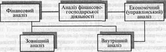 З переходом України до ринкових відносин відбувається реформування бухгалтерського обліку, розподіл його на фінансовий та управлінський. Ця перебудова не могла не вплинути і на науку «економічний аналіз». У сучасних умовах реформування бухгалтерського обліку аналіз фінансово-господарської діяльності поділяється на фінансовий та управлінський (рис. 1.1).