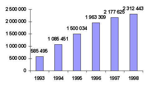 * начиная с 1998 года деньги насчитываются с расчёта на одного застрахованного Как видно из данной таблицы поступления в доходов от медицинского страхования неуклонно росли. Так с 1992 года они выросли с 438 861 тысяч ЕЕК до 3 425 000 тысяч ЕЕК, что составило чуть менее 800% за 6 лет. Это представляет собй чрезвычайно удачное развитие ситуации в республике. Хотя Эстонии потребуется еще некоторое время для дого чтобы достичь показателей Европейского уровня, однако уровень качества медицинских услуг, а также качества медицинских препаратов является одним из лучших в Восточной Европе. Динамика роста социального налога на одного человека