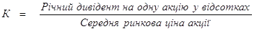 2. Дивідендний дохід на одну акцію у відсотках