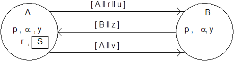Формальная запись протокола: В : ДСЧ (В) A : ДСЧ (A)