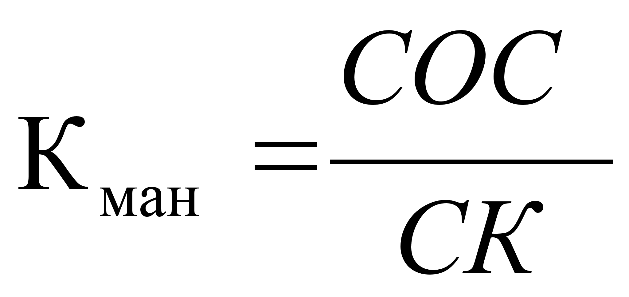 где СОС – собственные оборотные средства, ОС – оборотные средства. Коэффициент показывает обеспеченность средствами источники формирования запасов и затрат. Коэффициент маневренностиКоэффициент показывает, сколько средств достаточно для независимости. Норматив коэффициента ≥ 0,2-0,5.