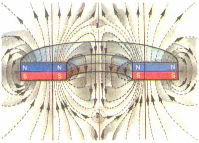 Доклад: Мир в магнитном кольцеДоклад: Мир в магнитном кольцеИгорь Лебедев Кандидат технических наук Михаил Федорович Остриков сделал научное открытие, можно сказать, на ходу, а если точнее – в поезде, возвращаясь из Москвы в Ленинград. В столице он был по делу – пытался получить авторское свидетельство на свое очередное изобретение. Но после беседы с экспертами ВНИИГПЭ зарегистрировать новшество не удалось. И вот, сидя в купе, он вертел в руках обычный металлический шарик от подшипника и ферритовое кольцо – детали отвергнутого изобретения. После очередного толчка поезда шарик закатился в кольцо, да и остался в нем. Михаил Федорович собирался уж было вынуть шарик, но вдруг ощутил, как надежно тот обосновался внутри. При его выталкивании в ту или иную сторону ощущалось противодействие, возвращающее шарик обратно. Вроде бы все понятно: ферритовое кольцо – магнит, притягивающий металл. Остриков машинально представил себе общепринятую картину силовых линий кольцевого магнита и с этого момента лишился покоя. Действительно, а какова картина магнитных силовых линий ферритового кольца с прямоугольным поперечным сечением, если одна его сторона представляет собой северный полюс, а другая – южный? Оказывается, в учебниках и справочной литературе по магнетизму она не приводится. Специалисты, к которым Остриков обращался со своим «наивным» вопросом, обычно отвечали «Все очень просто Структура линий будет примерно такой же, как у кольцевого проводника с постоянным током». – «Но тогда, – говорил Михаил Федорович, – непонятно, почему шарик так прочно обосновывается внутри кольца, попадая будто в мешок». Наконец, он поставил простой опыт. Повернул ферритовое кольцо на ребро, продел сквозь картонку и насыпал на нее мелких металлических опилок. Встряхнул, чтобы они распределились в соответствии с магнитным полем, и увидел, что все происходит далеко не так. В области, прилегающей к отверстию кольца, с линиями происходило что-то непонятное. Вместо того чтобы непрерывно пронизывать его, они расходились, очерчивая фигуру, напоминающую туго набитый мешок Он имел как бы две завязки – вверху и внизу (особые точки 1 и 2 на рис. 1) Эта область, по сути, и есть открытие Острикова. Он назвал ее магнитным балджем (bulging – англ. выпуклый, выпяченный).