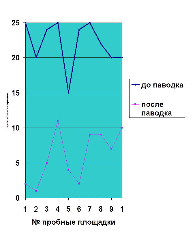 Но водой были видимо занесены виды растений ранее не встречавшиеся на этом галечнике. Например: какалия копьевидная. Вывод: по диаграмме №1 видно, что паводок уничтожает растения прибрежного галечника. Водой приносятся гидрохорных растений. Диаграмма №1. Видовой состав растительности прибрежного галечника.
