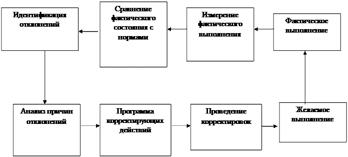 рис. 2 Контур обратной связи управленческого контроля Реализация этого контура обратной связи в реальном масштабе времени обладает некоторой инерцией. За счет потерь и отсрочки корректирующих воздействий возможно усугубление положения, переход его в новое, подчас более грозное качество. Заключительный контроль исполнения (контроль выполнения или результирующий контроль) ставит своей целью определение степени соответствия конечного результата после исполнения документа ожидаемому результату. Хотя воздействовать на результаты уже невозможно, он целесообразен и очень важен, так как на его основе возможны выводы, способствующие разработке мероприятий по совершенствованию исполнения распоряжений. В рамках заключительного контроля обратная связь используется после того, как работа выполнена. Либо сразу по завершению контролируемой деятельности, либо по истечении определенного заранее периода времени фактически полученные результаты сравнивают с требуемыми. В практической деятельности итог заключительного контроля состоит не только в оценке деятельности конкретных подразделений, которые исполняли данный распорядительный документ, но и в выводах, в обобщенной форме вскрывающих причины отклонений, если таковые выявлены, а также в определении пути и механизмов устранения причин, их породивших. Как правило, делаются выводы о необходимости применения соответствующих санкций в отношении исполнителей или организаторов исполнения. В тех случаях, когда основное внимание результирующего контроля сосредоточено на выявлении и распространении положительного опыта, должно быть сделано заключение относительно условий и механизмов, позволивших достичь соответствующих результатов, а также относительно оценки и мер стимулирования исполнителей.[13] Осуществление ряда взаимосвязанных контрольных функций позволяет комплексно рассматривать контролирование как единый, непрерывный процесс, характерный для любых ситуаций. В этом процессе можно выделить три логических этапа. Первый этап связан с установлением норм (стандартов) и критериев, по которым должен оцениваться итог деятельности. Второй этап состоит в сопоставлении полученных результатов с нормами, по которым нужно оценивать работу. Третий этап заключается в том, чтобы на основе полученных результатов принять управленческие решения по исправлению допущенных отклонений от норм, если достигнутые результаты существенно отличаются от них. Нормы (стандарты) надо устанавливать прежде, чем можно будет сделать какую бы то ни было оценку. Если контроль задумывался как слежение (мониторинг) или регулирование плана, то должна быть заранее установлена цель, на которую направлены планируемые усилия. Оцениваемые результаты должны быть взяты в отношении к чему-либо (к цели) – или же они будут ничего незначащими статистическими данными. Невозможность выразить количественно показатель цели управления не должна служить причиной того, чтобы не устанавливать вообще контрольных стандартов. Даже субъективный показатель при условии, что осознается его ограниченность, лучше, чем ничего.[14] На этапе сопоставления полученных результатов с установленными нормами, определяется, насколько достигнутые результаты соответствуют ожиданиям, насколько допустимы или относительно бе
