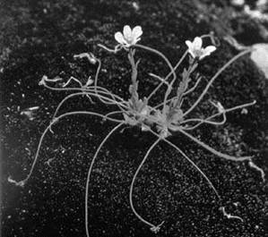 Камнеломка паучник Со времени, когда на Земле доживали свой век последние динозавры, соотношения суши и моря не раз существенно изменялись. Только на севере они оставались относительно устойчивыми. Континентальные шельфы были осушены. Поскольку на севере Европы и Азии эти шельфы особенно пространны, то побережье Северного океана (который не был ледовитым) находилось значительно севернее всех арктических островов (приблизительно на уровне современных глубин 200 м). Климат был очень теплым, и там, где теперь для прохождения судов необходим ледокол, росли субтропические деревья. Похолодание началось около 30 млн лет назад. Субтропические деревья в высоких широтах постепенно исчезали, а их место заняли деревья умеренно-теплого климата, среди которых было много хвойных. Однако похолодание продолжалось, и теплолюбивых деревьев на севере оставалось все меньше. Около 10 млн лет назад Арктикой еще и не пахло, в северо-восточной Азии оголились верхушки гор, возник альпийский или, как говорят в Сибири, гольцовый пояс. Это был новый тип среды обитания с весьма жесткими условиями. Растения, оказавшиеся в этой среде, должны были либо приспособиться к ней, либо исчезнуть. Приспособление было связано прежде всего с выработкой жизненной формы растения, прижимающегося к земной поверхности, так как около нее летом теплее, а зимой снежный покров защищает от иссушения ветрами. Вероятно, многие виды растений не выдержали требований, предъявляемых средой обитания, но немало было и таких, которые боролись за свое существование и победили, но при этом сильно изменились. И стали совершенно непохожи на своих родственников, до сих пор обитающих в Америке или в южной Азии. Попутно следует заметить, что в то время, как на северо-востоке Азии сформировался альпийский пояс, Гималаи еще имели облик холмов. Они не препятствовали тропическим ветрам с Индийского океана проникать далеко вглубь Азии. Однако в следующую геологическую эпоху – плиоцен (5,5–0,7 млн лет назад) – Гималаи поднялись до 3 км вместе с соседними горными системами и образовали экран для тропических масс воздуха.