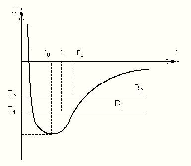 С самого начала надо иметь в виду, что законы движения макроскопических тел неприменимы для описания поведения атомных частиц. А вот энергия электронов в атомах, молекулах кристалла не может иметь произвольных значений. В квантовой механики показывается, что энергии электронов в таких случаях могут принимать лишь определённые, дискретные значения. Это означает что если при расстоянии между ядром и электроном r1 (рис 31) Энергия электрона Е1, то при расстоянии r2 энергия электрона станет Е2, причём ∆Е=Е2-Е1 имеет совершенно определённое значение. Электрон не может иметь энергию, большую Е1, но меньшую Е2. О величинах, которые могут принимать лишь ряд определённых дискретных значений, говорят, что они квантованы. К таким величинам относятся энергия электронов в атомах, молекулах и кристаллах (рис.31). На рис 31 представлены диаграмма уровней энергии атома водорода, или энергетический спектр атома водорода. Самый низкий уровень энергии Е1 соответствует ближайшему расположению электрона от ядра и характеризует основное, или нормальное состояние атомов. Такую энергию имеет атом, если он получает энергию извне. В основном состоянии изолированный атом может пребывать сколь угодно долго. Все энергетические уровни, начиная со второго, соответствуют возбуждённым состояниям атома. Эти значения энергии электрон в атоме водорода может иметь, если он приобретает дополнительную энергию за счёт воздействия каких-либо внешних факторов равную ∆Е=Еm-Еn , где m и n- номера верхнего и нижнего энергетических уровней, между которыми осуществляется переход электрона. Находится в возбуждённом состоянии долгое время атом не может, и поэтому он самопроизвольно переходит в нормальное состояние, отдавая излишек энергии ∆Е=Еn-Еm в виде электромагнитных излучений (света). На этой диаграмме видно также, что энергия электрона в атоме водорода имеет отрицательное значение. Это означает, что нулевая энергия соответствует состоянию, в котором находится неподвижный электрон, удалённый на бесконечно большое расстояние от ядра и не взаимодействующий с ним. При рассмотрении энергетического спектра атома следует обратить внимание также и на то, что при увеличении главного квантового числа n происходит сближение уровней энергии. При достаточно большом n можно считать, что энергия атома практически не квантуется, а изменяется непрерывно. В этом находит своё выражение принцип соответствия, установленный Н.Бором в 1922г. 5.4. Элементы зонной теории кристаллов Как изменится эта диаграмма для двухатомной молекулы, состоящей из двух атомов. По мере сближения каждый атом - его электроны, ядро - испытывает увеличивающее силовое воздействие со стороны электрических полей электронов и ядра другого атома. Это взаимодействия между атомами приводит к тому, что вместо одного энергетического уровня, одинаково для двух изолированных атомов, возникают два близко расположенных, но не совпадающих уровня. В таких случаях говорят, что происходит расщепление энергетических уровней электронов. Следовательно, в энергетическом отношении образование двух атомов молекулы означает, что для каждого электрона обоих атомов появилась возможность принимать вдвое больше значений энергии, чем в изолированном состоянии. Если теперь будут сближаться 3,4,5 или вообще N атомов, то в результате их в
