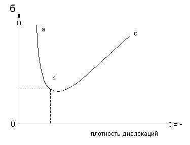 4.6. Влияние дислокации и других дефектов на механические свойства материалов и на процесс деформирования Изучение дефектов кристаллов имеет важное практическое значение, так как механические свойства твёрдых тел, их пластичность, сопротивление деформированию связаны с дислокациями и другими дефектами в кристаллах. Экспериментальное изучение механических свойств материалов показывает, что чистые металлы в большинстве являются мягкими и пластичными. Пластичность кристаллов, их относительно малая прочность определяется возникновением дислокаций в процессе роста кристалла. При группировке точечных дефектов образуются микротрещины. Хрупкое разрушение происходит в том случае, если пластическое течение затруднено в виду затруднения дислокаций микротрещинами и другими дефектами, присутствующими в исходном состоянии и возникающими в процессе деформации. В практике обращает на себя внимания и такой вид разрушений, как усталостное. Усталость-это вид разрушения материала, происходящих в течение продолжительного времени под действием периодически изменяющихся нагрузок при таких напряжениях, которые не приводят к разрушению при статических нагрузках. В настоящее время хорошо известны основные особенности усталости и меры, которые должны быть приняты для предотвращения её появления. Острые надрезы и переходы на поверхности, отверстия под заклёпки, царапины, коррозия приводят к заметному снижению усталостной прочности машин. Хорошее качество поверхности и защита от коррозии способствует увеличению сопротивления усталости. Однако, несмотря на наличие таких эффективных средств исследования, как электронная микроскопия, многое в механизме усталости остаётся неясным. Усталость является особенно серьёзной проблемой для металлов и сплавов, так как эти материалы широко используются в машинах и конструкциях, подвергающихся действию периодически меняющихся нагрузок. Итак, на прочность кристаллических материалов влияют дислокации, их движение и взаимодействие, а также другие дефекты, встречающиеся в кристаллах. 4.7. Повышение прочности материалов Дислокации и их движение оказывают большое влияние на прочность материалов, снижая их сопротивление деформированию, делая их пластичнее. Однако взаимодействие дислокаций между собой, а также с препятствиями другой природы уменьшает подвижность дислокаций. Это приводит к уменьшению пластичности и к повышению прочности материалов. Можно графически представить влияние дислокации на сопротивление сдвигу (рис29). рис. 29 Здесь по оси абсцисс отложена плотность дислокаций, а по ординате -сопротивление сдвигу. Минимальное сопротивление сдвигу определяется некоторой критической плоскостью дислокации ркр, приближённо оцениваемой 107-108 см -2. из анализа этой кривой следует, что можно повышать прочность, повышая плотность дислокаций. Этот способ повышения прочности называют наклёпом. При наклёпе в результате взаимодействия дислокаций их дальнейшее движение затрудняется. Наклёп проводят, накатывая заготовку между валками. Валки оказывают на заготовку большое давление и раскатывают её в плоские листы. В результате этого увеличивается число дислокаций, а следовательно у этих листов повышается сопротивления пластической деформации. Если продолжить анализ кривой, то можно сде