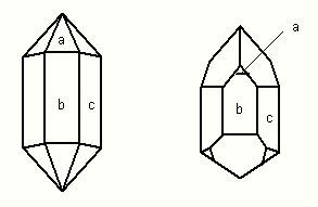 1.3. Закон постоянства углов - основной закон кристаллографии Кристаллы одного и того же вещества могут иметь весьма разнообразную форму. Форма кристалла, как указывалось выше, зависит от условия кристаллизации. Цвет не является характерным признаком кристаллов данного вещества, но он очень сильно зависит от примесей. Однако кристаллографы установили: В кристаллах одного вещества углы между соответственными гранями всегда одинаковы [закон постоянства углов]. Грани могут отличаться между собой по форме и всё-таки считаться равными, если они обладают одинаковыми физическими и химическими свойствами. Закон постоянства углов утверждает, что двугранный угол, образованный гранями а и b (рис3) в различных кристаллах данного вещества, будет один и тот же. Соответственно во всех кристаллах данного вещества будут равны между собой и двугранные углы, образованные гранями а и с, b и с. рис. 3 1.4. О симметрии С явлением симметрии мы часто встречаемся в окружающей жизни. Если тело можно мысленно пересечь плоскостью так, что каждой точке а, тела с одной стороны плоскости, будет соответствовать точка b, лежащая по другую сторону плоскости, притом так, что прямая аb, соединяющая эти две точки, перпендикулярна плоскости и делится этой плоскостью пополам, то это тело обладает зеркальной симметрией. Сама плоскость называется в этом случае плоскостью симметрии. Кроме зеркальной симметрии, тела могут обладать ещё поворотной симметрией. Тело обладает поворотной симметрией, если при повороте на соответствующий угол все части фигуры совмещаются друг с другом. Ось, вокруг которой происходит вращение тела, называют осью симметрии. Смотря по тому, сколько раз совместится фигура сама с собой при полном обороте вокруг оси, ось симметрии имеет различный порядок (1, 2, 3 и т.д.). Тела могут обладать ещё центром симметрии. Центр симметрии - точка в середине тела, относительно которой любая точка тела имеет другую соответствующую её точку, лежащую на таком же расстоянии от центра в противоположном направлении.
