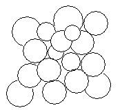Электронные облака валентных электронов двух атомов, образующих молекулу с ковалентной связью, перекрываются, оба валентных электрона (по одному от каждого атома) обобществляются, т.е. принадлежат обоим атомам одновременно, и большую часть времени проводят между атомами, связывая их в молекулу (рис 12).Эта связь сильная. МОЛЕКУЛЯРНАЯ кристаллическая структура отличается пространственной решёткой, в узлах которой находятся нейтральные молекулы вещества. Силами, удерживающими молекулы в узлах этой решётки, являются силы межмолекулярного взаимодействия. Эти силы слабые. Твёрдые вещества с молекулярной решёткой легко разрушаются при механическом воздействии и имеют низкую температуру плавления. Примерами веществ с молекулярной пространственной решёткой является нафталин, твёрдый азот и большинство органических соединений. МЕТАЛЛИЧЕСКАЯ кристаллическая структура отличается наличием в узлах решётки положительно заряженных ионов металла. У атомов всех металлов валентные электроны, т.е. наиболее удалённые от ядра атома, очень слабо связаны с атомами. Электронные облака таких периферийных электронов перекрывают сразу много атомов в кристаллической решётке металла. Это означает, что валентные электроны в кристаллической решётке металла не могут принадлежать одному и даже двум атомам, а обобществляются сразу многими атомами. Такие электроны практически могут беспрепятственно двигаться между атомами. Таким образом, каждый атом в твёрдом металле теряет свои периферийные электроны, и атомы превращаются в положительно заряженные ионы, а оторвавшиеся от них электроны движутся между ионами по всему объёму, занятому кристаллом. Что же касается вандерваальсовой связи, то она всегда примешивается к ионно-ковалентной связи. Ведь хотя внутренние оболочки всех атомов всегда заполнены, вследствие движения электронов центр их отрицательного заряда может не совпадать с центром положительно заряжённого ядра. 2.2.Структура кристаллов Для ионных, металлических и вандерваальсовых сил взаимодействия характерны их симметричность силы связи в молекулярных и металлических кристаллах. Симметричный характер сил связи приводит к тому, что ионы оказываются плотно упакованными. Расположения частиц в таких кристаллах подобно плотной упаковки шаров в некотором объёме. Для того чтобы разобраться в структуре кристаллов, рассмотрим законы плотной упаковки шаров. Остановимся на случае, когда все шары одинаковы. Первый слой шаров можно уложить плотно единственным образом так, как показано на рисунке 13. Каждый шар имеет при этом 6 соседей.