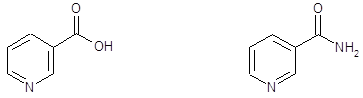 Витамин В2 представляет собой метилированное производное изоаллоксазина, к которому в положении 9 присоединён спирт рибитол; поэтому витамин В2 часто называют рибофлавином, т.е. флавином, к которому присоединён пятиатомный спирт рибитол: Наличие активных двойных связей в циклической структуре рибофлавина обуславливает некоторые химические реакции, лежащие в основе его биологического действия. Присоединяя водород по месту двойных связей, окрашенный рибофлавин легко превращается в бесцветное лейкосоединение. Последнее, отдавая при соответствующих условиях водород, снова переходит в рибофлавин, приобретая окраску. Таким образом, химические особенности строения витамина В2 и обусловленные этим строением свойства предопределяют возможность участия витамина В2 в окислительно-восстановительных процессах. 3.3.2. СОДЕРЖАНИЕ ВИТАМИНА В2 В НЕКОТОРЫХ ПРОДУКТАХ И ПОТРЕБНОСТЬ В НЕМ. Витамин В2 широко распространен во всех животных и растительных тканях. Он встречается либо в свободном состоянии (например, в молоке, сетчатке), либо, в большинстве случаев, в виде соединения, связанного с белком. Особенно богатым источником витамина В2 являются дрожжи, печень, почки, сердечная мышца млекопитающих, а также рыбные продукты. Довольно высоким содержанием рибофлавина отличаются многие растительные пищевые продукты. Ежедневная потребность человека в витамине В2, по-видимому, равняется 2-4 мг рибофлавина. 3.3.3. РОЛЬ В ОБМЕНЕ ВЕЩЕСТВ. Витамин В2 встречается во всех растительных и животных тканях, хотя и в различных количествах. Это широкое распространение витамина В2 соответствует участию рибофлавина во многих биологических процессах. Действительно, можно считать твёрдо установленным, что существует группа ферментов, являющихся необходимыми звеньями в цепи катализаторов биологического окисления, которые имеют в составе своей простатической группы рибофлавин. Эту группу ферментов обычно называют флавиновыми ферментами.К ним принадлежат, например, желтый фермент, диафораза и ци-тохромредуктаза. Сюда же относятся оксидазы аминокислот, которые осуществляют окислительное дезаменирование аминокислот в животных тканях. Витамин В2входит в состав указанных коферментов в виде фосфорного эфира. Так как указанные флавиновые ферменты находятся во всех тканях, то недостаток в витамине В2 приводит к падению интенсивности тканевого дыхания и обмена веществ в целом, а следовательно, и к замедлению роста молодых животных. В последнее время было установлено, что в состав простетических групп ряда ферментов, помимо флавоновой группы, входят атомы металлов(Cu,Fe,Mo). 3.4. ВИТАМИН РР (антипеллагрический витамин, никотинамид). При отсутствии витамина РР (от английского pellagra preventing) в пище, у человека возникает заболевание, получившее название пеллагры. 3.4.1. ХИМИЧЕСКАЯ ПРИРОДА ВИТАМИНА РР. Антипеллагрическим витамином является никотиновая кислота или её амид. Никотиновая кислота была известна химикам ещё с 1867 года, но только 70 лет спустя, было установлено, что это относительно простое и хорошо изученное вещество играет роль важнейшего витамина. Никотиновая кислота представляет собой белое кристаллическое вещество хорошо растворимое в воде и спирте. При кипячении и автоклавировании биологическая активность никотиновой кислоты не изменяется.