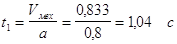 Рассчитаем время t1 за которое механизм достигает заданной скорости Vмех: