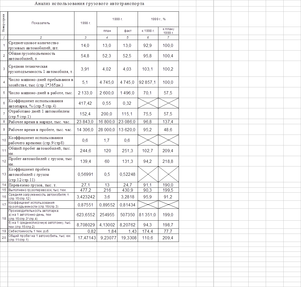 Фактический объем тракторных работ может отклоняться от планового по ряду причин, основные из них: изменение технологии возделывания сельскохозяйственных культур, уровня механизации полевых работ, изменение размеров валового сбора продукции и объема земляных, стационарных и транспортных работ. Объем полевых механизированных работ изменяется преднамеренно, в соответствии с погодными условиями и по другим причинам; уменьшается, например, если работы затягиваются, а затем не могут быть выполнены. Эффективность машинотракторного парка приведена в соответствующих таблицах (см. выше). Если посмотреть на таблицу «Анализ использования тракторного парка», то сразу бросается в глаза низкий коэффициент использования парка. Это обусловлено тем, что в сельском хозяйстве характер работы – сезонный. Если мы более внимательно посмотрим на таблицу, анализирующую использование тракторного парка, то увидим, что годовая выработка на 1 трактор составляет 83,9% от плановой. Дневная же выработка составляет 117% от плановой. Т. е. в зимний период тракторный парк эксплуатируется минимально, а в летний – максимально, даже с перегрузкой. Сложившаяся в данный момент общероссийская экономическая ситуация далеко не благоприятна для производства сельхозпродукции. Из-за непомерно высоких цен на запасные части, комплектующие и горюче-смазочные материалы, сельское хозяйство, как производитель сырья для пищевой промышленности не является рентабельным, о чем свидетельствуют показания в «Анализе основных экономических показателей» С другой стороны, при наличии собственных модулей переработки сельскохозяйственного сырья и доведения его до готовой продукции и, естественно до конечного покупателя, показатели рентабельности резко меняются. Это связано с тем, что на рыке сегодня цена 1 л. молока в упакованном виде составляет порядка 5 – 10 рублей, в то время как самому производителю этого молока платят 2,5 – 4 рубля за 1 литр. Примерно такая же картина и с зерном, и с мясом. Что касается грузового автотранспорта, то причины низких показателей все те же, что и у тракторов. Очень большую роль играет географическое положение. АО «Колос» удалено от районного центра на 70 км., от краевого – на 170. Дорог можно сказать, что нет совсем. Поэтому очень часто выходят из строя автомобили. ЗадачаСколько потребуется машин ГАЗ-53 для отвоза зеленой массы от КИР-1,5, работающей с трактором МТЗ-80 на второй передаче? Расстояние транспортировки – 5 км. Урожайность зеленой массы – 400 ц/га. Трактор МТЗ-80 на второй передаче движется со скоростью 4,26 км/час. Ширина захвата КИР-1,5 равна 1,5 м. Трактор работает в смену 6 часов. 6 час*4,26 км/час=25,56 км.=25560 м.; 25560м*1,5м=38340 м2=3,834га. 3,834га.*400ц/га.=1533,6ц.=153,4 т. Норма выработки на МТЗ-80 – 153,4 тонн. Автомобиль ГАЗ-53, грузоподъемностью 4 тонны. Сменное задание на вывозке зеленой массы с расстояния 5 км. равно 41,2 т. В основу расчета сменного задания взяты следующие исходные данные: