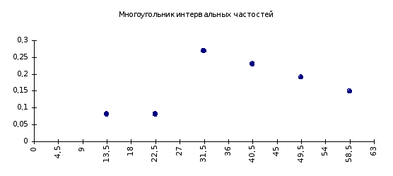 Построим интервальный вариационный ряд и график выборочной функции плотности.
