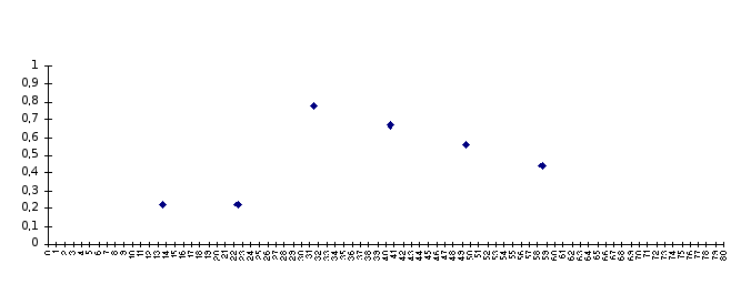 M[Y/X=60] = 40,5 D[Y/X=60] = 54 D[Y, ост] = 121,25 Коэффициент детерминации К = 1 - 121,25/169 = 0,28