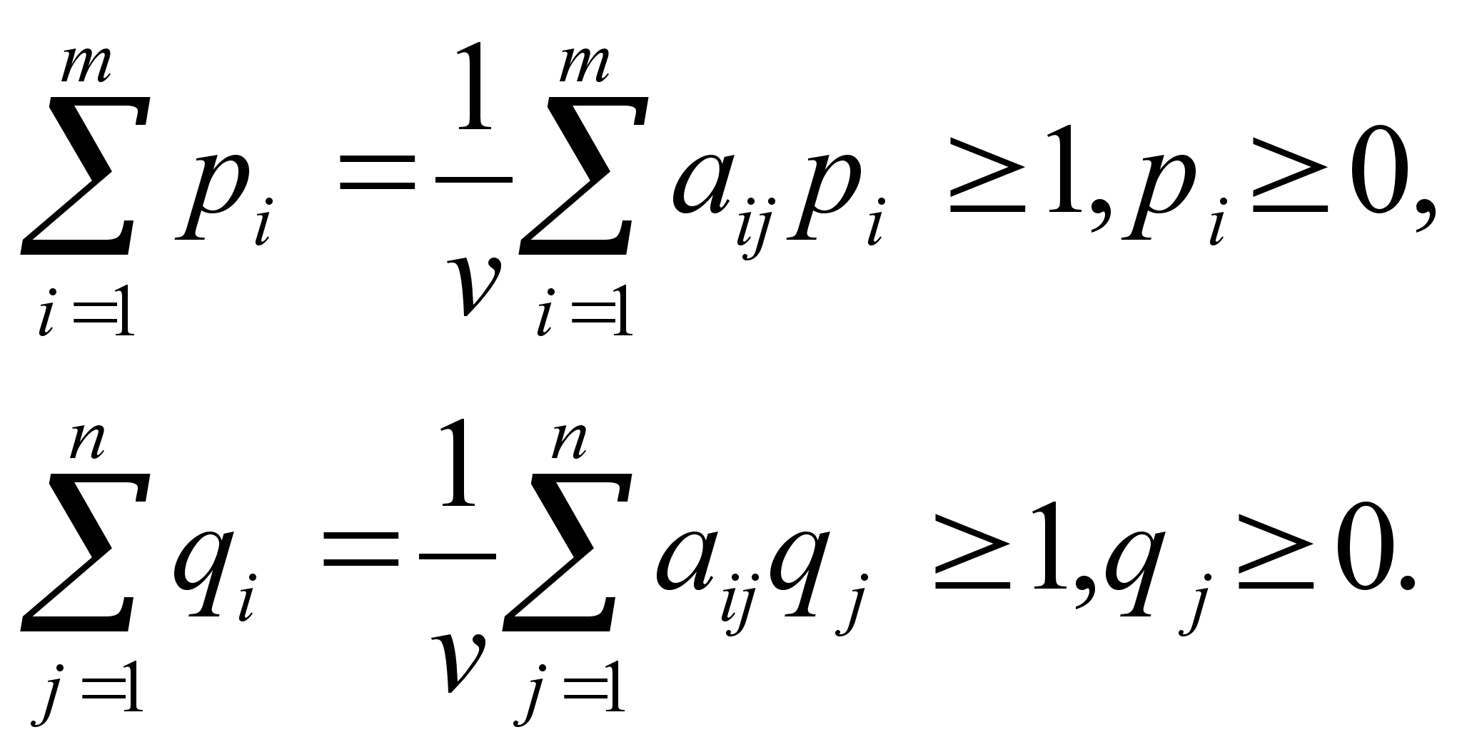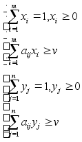 Оскільки перший гравець намагається максимізувати v за рахунок свої стратегій, то рішення системи зводиться до наступної задачі лінійного програмування: знайти максимум лінійної форми (3.4) при лінійних обмеженнях (3.11). Аналогічно робимо при рішенні системи (3.12)