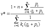 Ці стратегії будуть також оптимальними і в грі, яка задається матрицею Н. Щоб отримати значення цієї гри v*, треба до виразу (4.11) додати член кірі, тобто врахувавши співвідношення (4.3) (4.5) і (4.11) запишемо