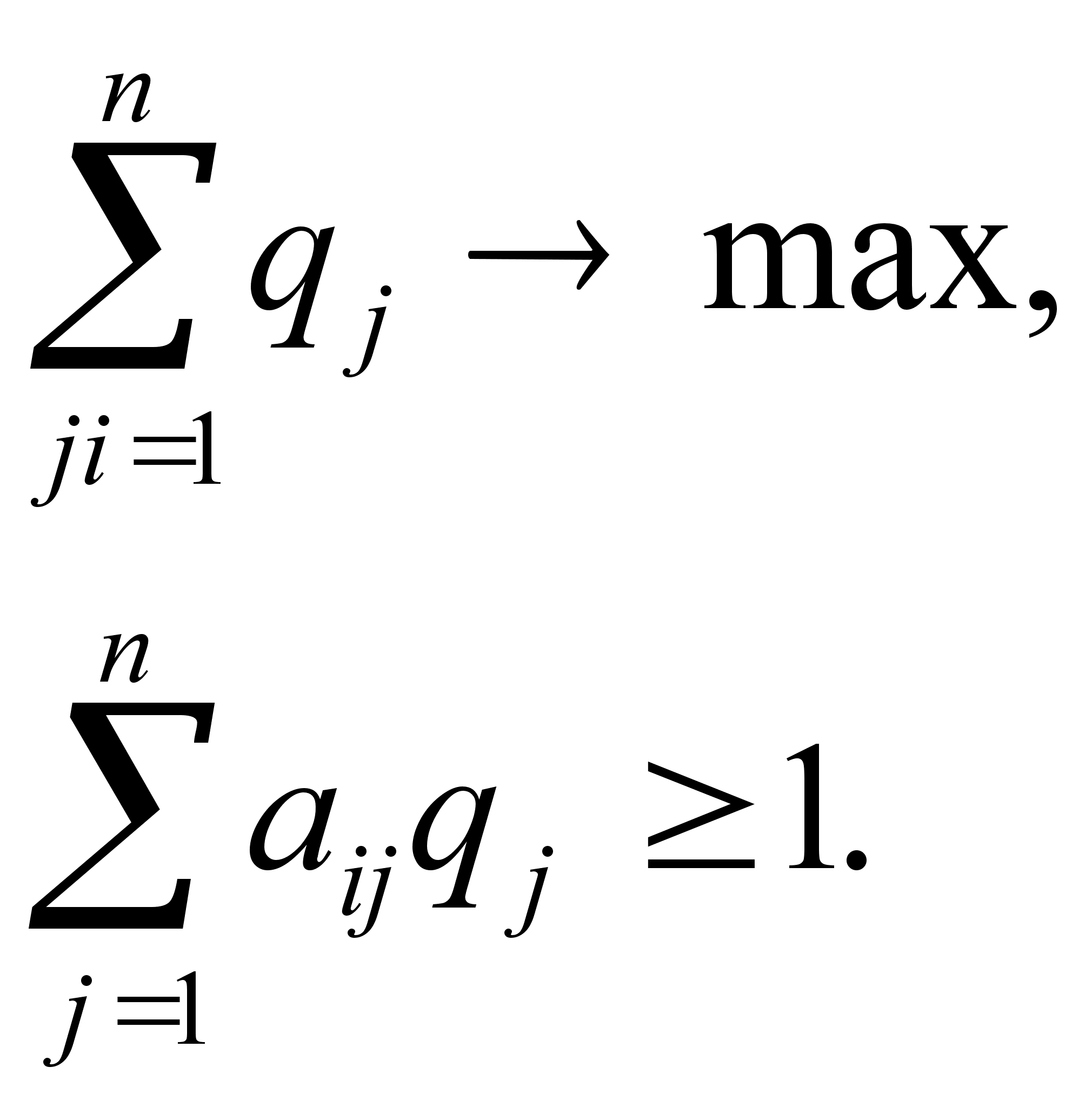 Оскільки другий гравець прагне знайти такі значеня уi, а значить і qі, щоб ціна гри v була максимальна, то розв”язування першої задачі зводиться до знаходження невід”ємних значень qі(і=1,2...m) при яких