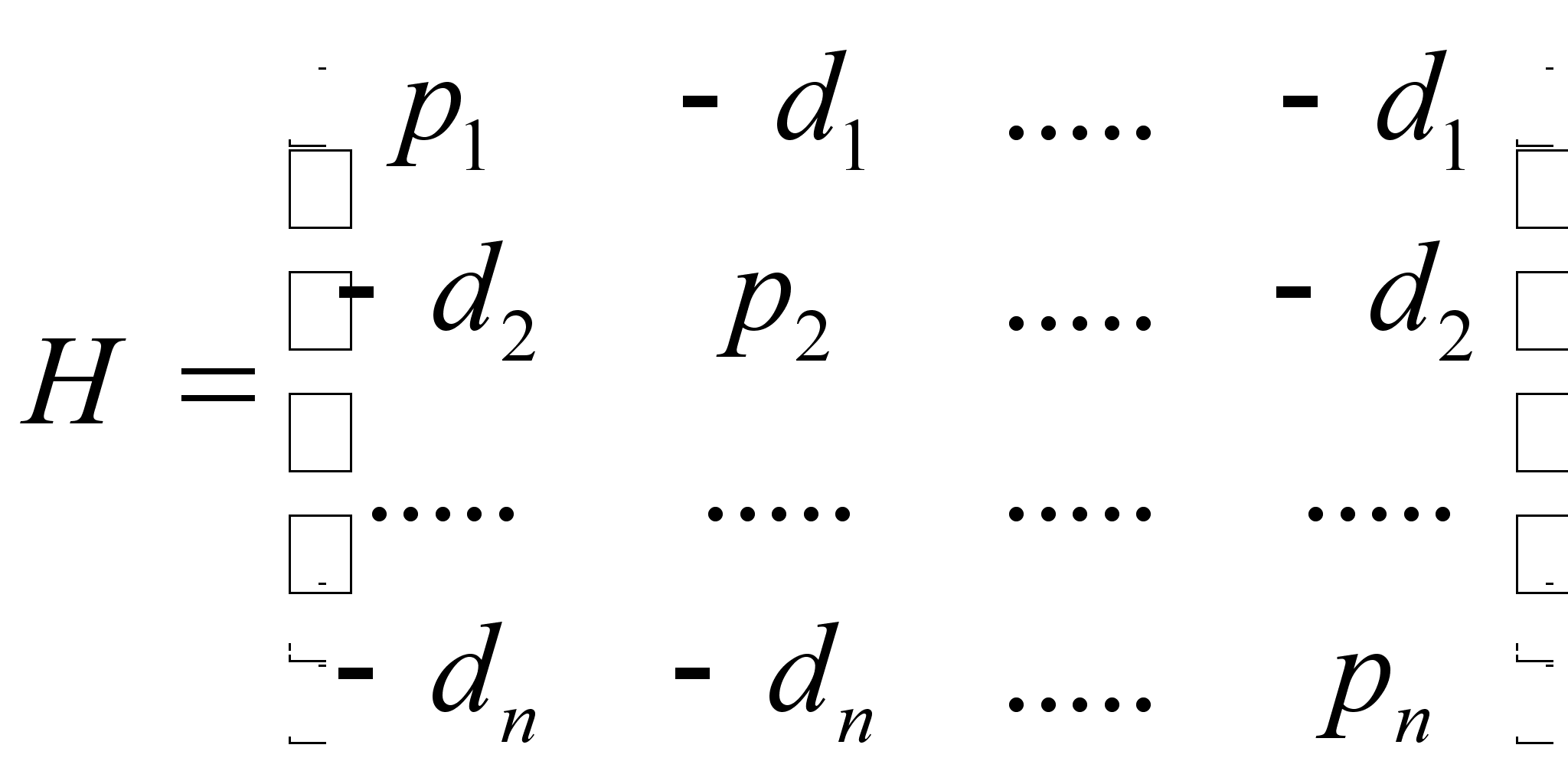Оптимальні стратегії автопідприємств визначаються вектором X=(1, 2,…, n), де 1, 2,…, n – відсотки від загальної суми коштів попиту ринку послуг. Помножимо перший рядок матриці на деяке число к1, другий – на к2 і так далі, щоб виконувалась умова: к1р1= к2р2=…= кnрn=p, (4.3) і віднімемо число р від усіх елементів матриці (4.2), внаслідок чого отримаємо матрицю Н*: