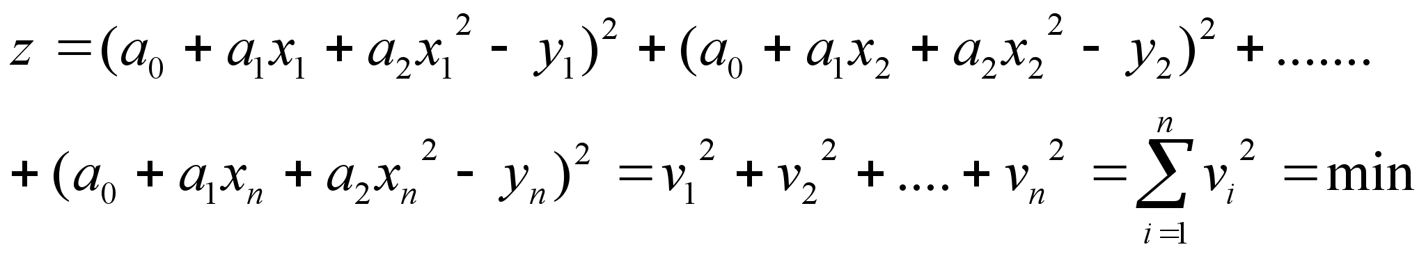 оскільки графіки дійсних величин (див додаток ) мають квадратичну форму. Знайдемо по методу найменших квадратів параметри параболічної функції