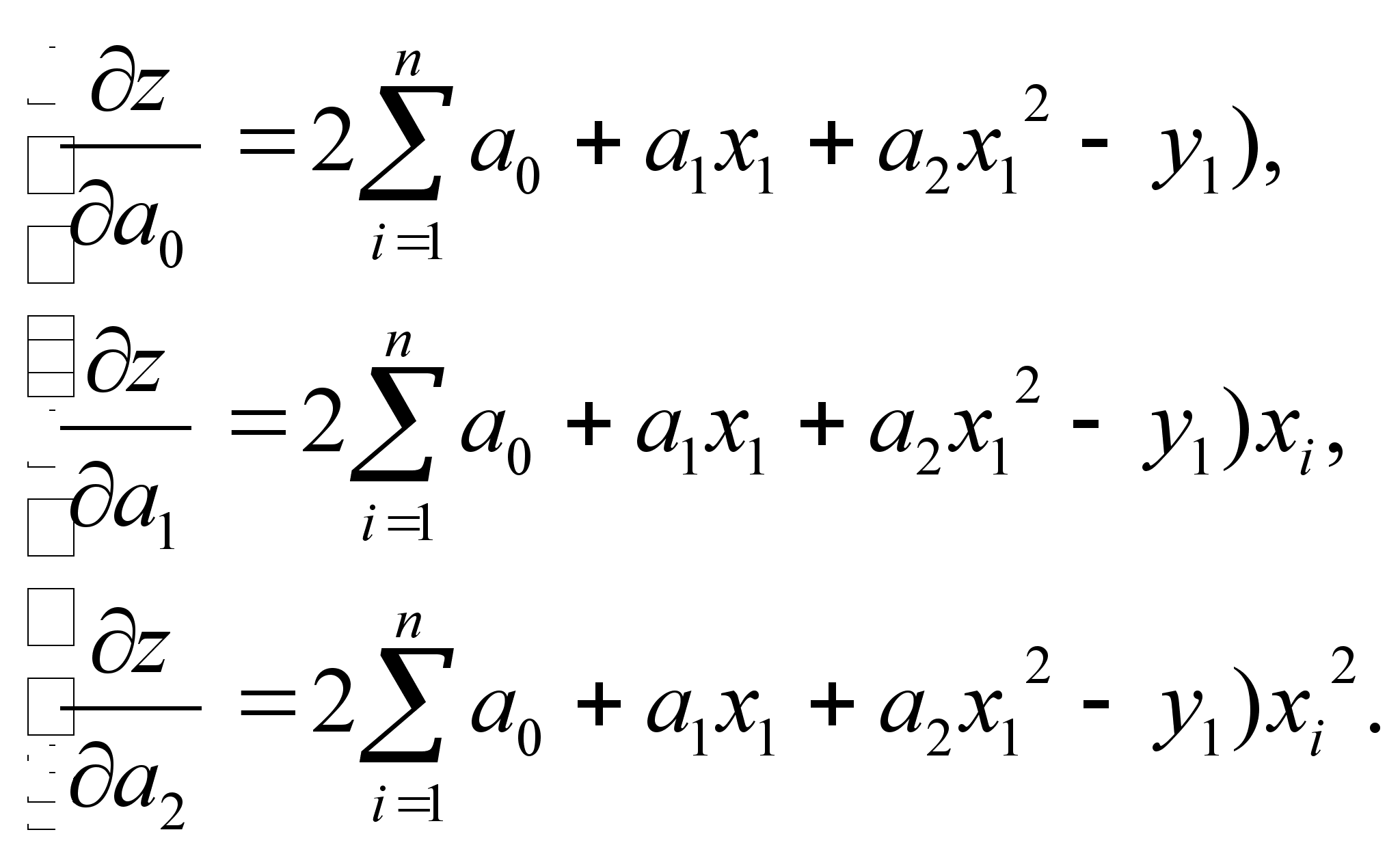 Прирівнявши часткові похідні до нуля, після проведення деяких перетворень отримаємо: