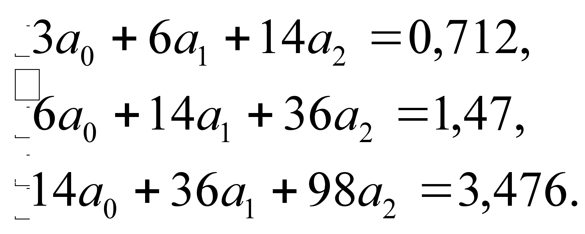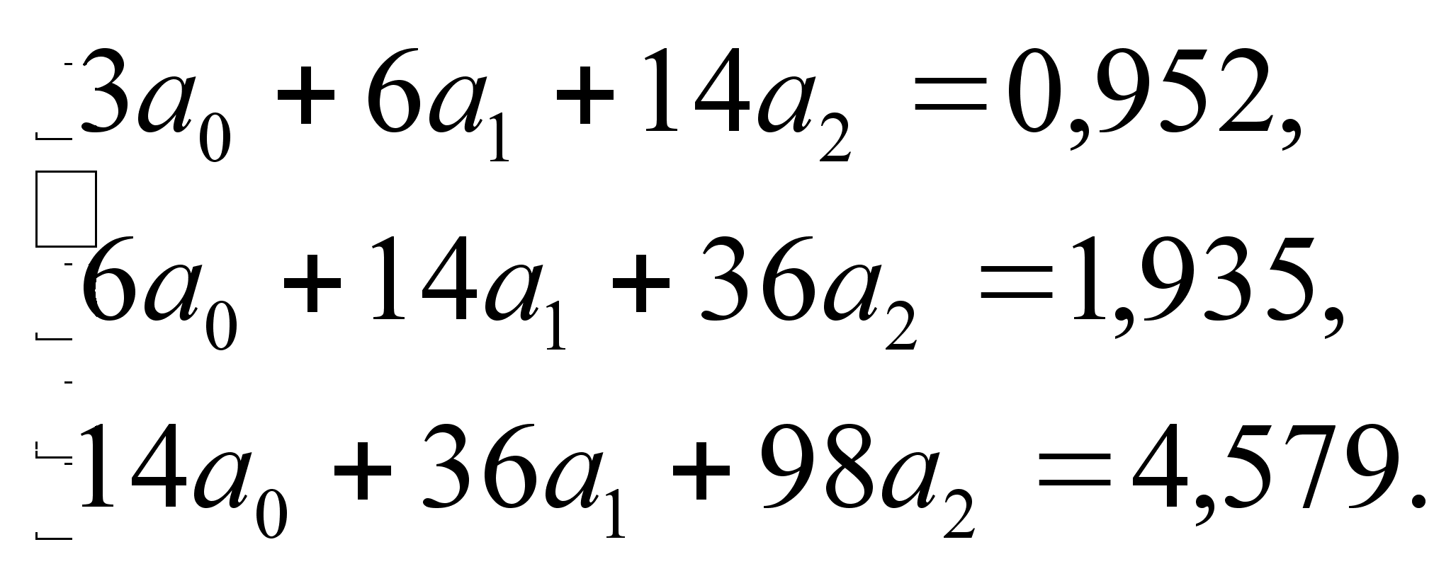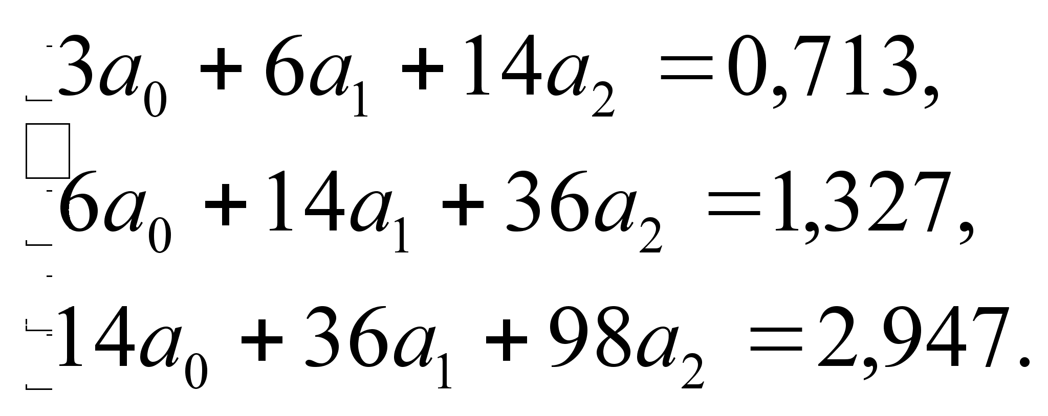 Підставляючи значення таблиці 5.3. в систему алгебраїчних рівняннь (5.5.) отримаємо наступну систему рівняннь: