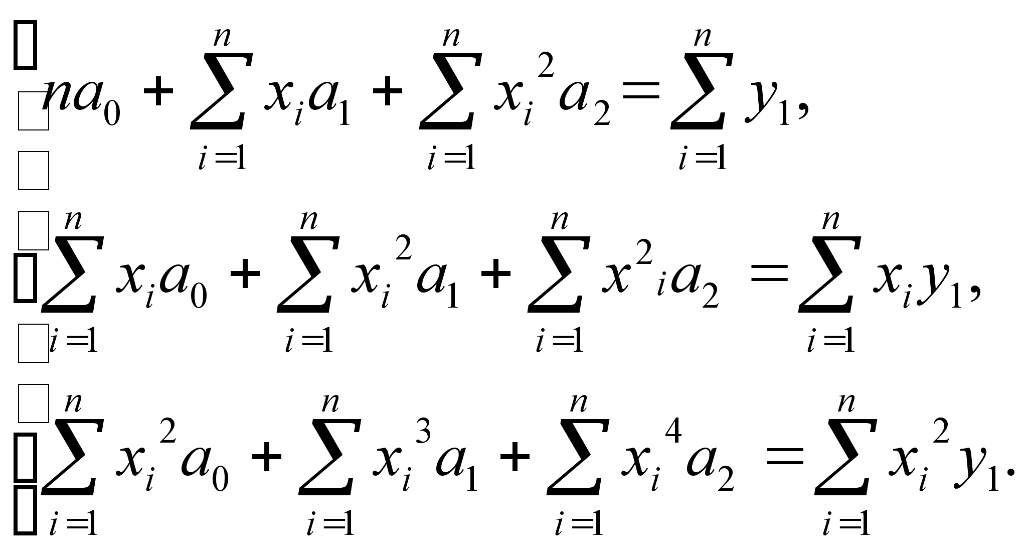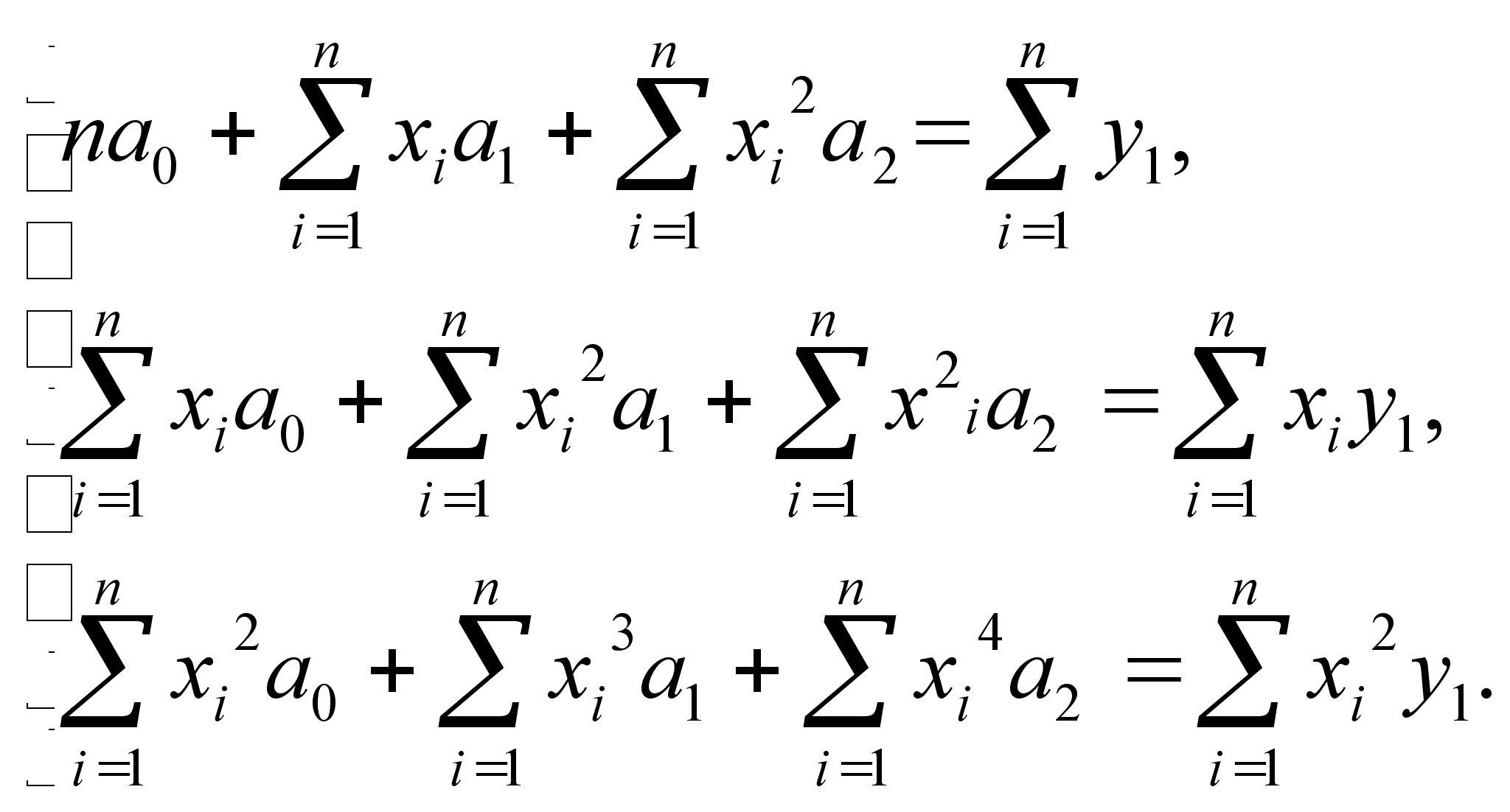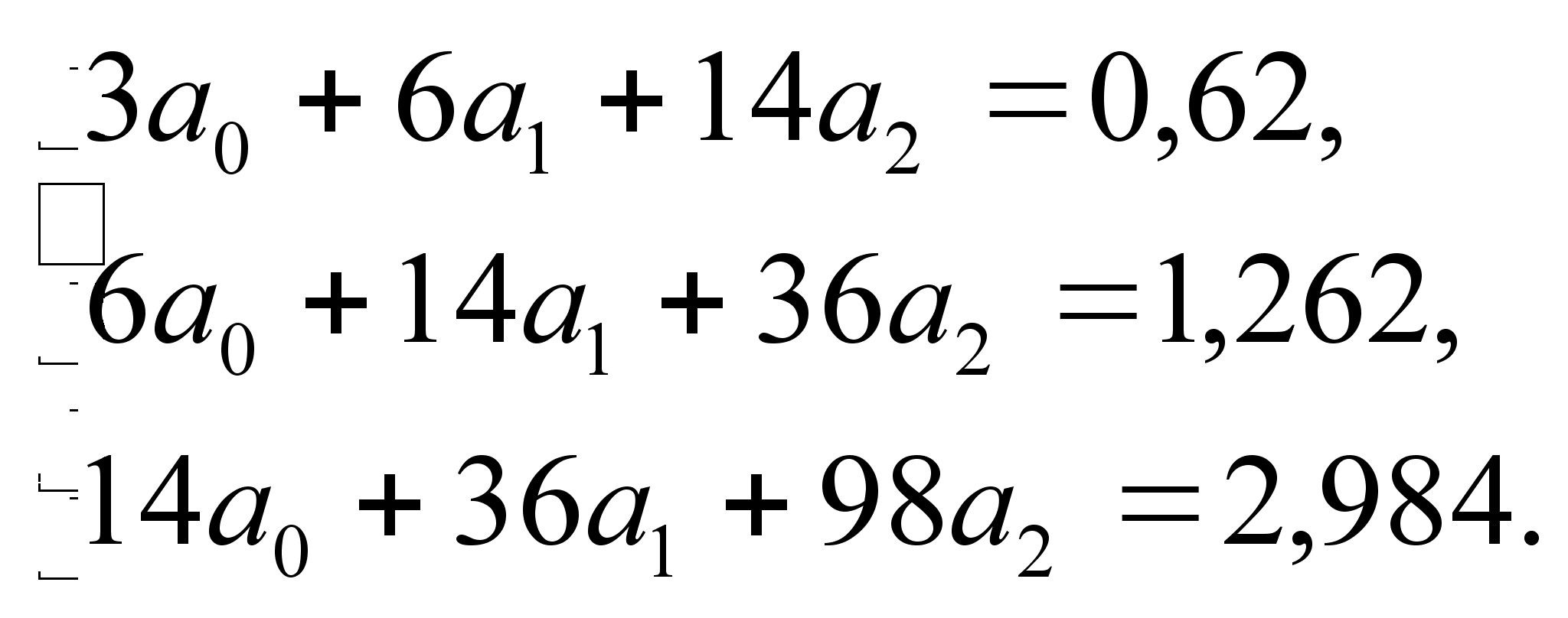 Підставляючи значення таблиці 5.3. в систему алгебраїчних рівняннь (5.5.) отримаємо наступну систему рівняннь: