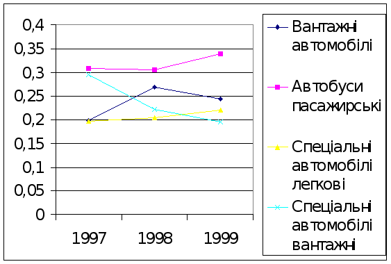 Таблиця 2.3Групування автомобільного парку залежно від часу перебування в експлуатації по Івано-Франківській області за 1997-1998 рр.