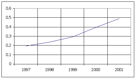 Підставляючи у дану функцію значення x (1,2,3,4 і т.д.), тобто роки, отримаємо такі прогнозовані оптимальні змішані стратегії для вантажних автомобілів: