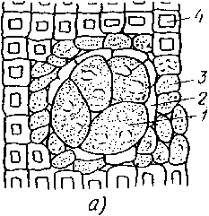 Строение сосны. Строение древесины хвойных пород. Древесина хвойных поро. имеет довольно простое и правильное строение. В ее состав входя трахеиды и паренхимные клетки. Трахеиды представляют собой сильно вытянутые клетки кососрезанными концами и сильно утолщенными стенками, они занимают 90...95% объема древесины. В пределах годичного слоя различают ранние и поздние трахеиды. Ранние трахеиды образуются весной, выполняют проводящую функцию и поэтому имеют широкие полости и тонкие оболочки, на стенках которых имеются поры. На попречном разрезе (рис. 1) трахеиды расположены правильными радиальными рядами. У ранних трахеид размер в радиальном направлении больше, чем в тангенциальном. Концы ранних трахеид имеют закругленную форму. Поздние трахеиды образуются в конце лета, выполняют механическую функцию, вследствие чего у них очень маленькие полости и толстые клеточные стенки. Количество пор на стенках ранних трахеид примерно в три раза больше, чем на стенках поздних трахеид. Трахеиды — мертвые клетки. В стволе растущего дерева только вновь образующийся слой состоит их живых клеток. Паренхимные клетки в древесине хвойных пород образуют сердцевинные лучи, смоляные ходы и у отдельных пород — древесную паренхиму. Сердцевинные лучи у хвойных пород узкие; на поперечном разрезе состоят из одного ряда клеток, по высоте — из нескольких рядов. Смоляные ходы представляют собой узкие межклеточные каналы, заполненные смолой. Смоляные ходы бывают вертикальные и горизонтальные. Вертикальный смоляной ход состоит из трех слоев: внутреннего выстилающего слоя, слоя мертвых клеток и слоя живых паренхимных клеток (рис. 2). Внутренний слой состоит из живых тонкостенных клеток. Эти клетки выделяют смолу и при заполнении канала смолой становятся плоскими, а при опорожнении канала вдаются внутрь до соприкосновения друг с другом. Горизортальные смоляные ходы проходят в сердцевинных лучах. Они образованы двумя слоями: выстилающими клетками и слоем мертвых клеток. Вертикальные и горизонтальные смоляные ходы соединяются между собой в единую систему. Диаметр вертикальных ходов 0,1 мм, длина их до 10 до 80 см. Древесная паренхима у хвойных пород распространена мало и представляет собой вытянутые по длине ствола единичные паренхимные клетки или клетки, соединенные в длинные ряды, идущие вдоль оси ствола. Древесной паренхимы нет у тиса и сосны. Заключение. В связи с тем, что ареал сосны весьма обширен: на севере он доходит до границы лесной зоны и в связи с тем , что эта древесина имеет вы- сокую стойкость против гниения, достаточно высокую прочность, хо- рошо обрабатывается, то она очень широко применяется. Она испо- льзуется в строительстве, машиностроении, мебельном производстве, железнодорожном транспорте, тарном производстве, для крепления горных выроботок и т.д. Помимо её того сосна является восполнимым природным богатством в отличии от например железа и нефти, поэто- му её можно очень широко использовать Приложение Р и с. 1. Схема микроскопичекого строения древесины сосны 1 — сердцевинный луч, 2 — окаймлённая пора, 3 — ранние трахеиды 4 — лучевые трахеиды, 5 — вертикальный смоляной ход, 6 — поздние трахеиды, 7--- годичный слой, 8 — многорядный луч с горизонтальным смоляным ходом Рис. 2. Вертикальные смоляные ходы на поперечном разрезе древесины сосны: а — 