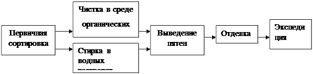 организации производства на Выполнил: ст. гр. 32ЭЛовчиев Ю.В.Руководитель работы:Абдрахимова Л. Р.Омск – 2003 Содержание Введение …………………………………………………………3 1. Организация основного производства на предприятиях химической чистки изделий……………………………………..4 1.2 Расчет возможного объёма работ, количества рабочих мест и оборудования по основным участкам предприятия…12 1.2.1. Участок обработки изделий в среде органических растворителей……………………………………………..12 1.2.2. Участок выведения пятен…………………………17 1.2.3 Участок влажно – тепловой отделки изделий……20 1.3 Организация работы комплексных бригад и расчет их численного состава……………………………………….24 2. Организация ремонтного хозяйства…………………………28 3. Организация обслуживания населения………………………32 Заключение ………………………………………………………35 Библиографический список..…………………………………….36 Приложение……………………………………………………….38 Введение Предприятия бытового обслуживания, как правило, являются государственными или большая их часть принадлежит ему. Особенно это характерно для химчисток. Отличие деятельности предприятия бытового обслуживания населения является то, что конечный результат труда коллектива его работников проявляется в экономической форме услуг. Исходя из этого, выстраивается ряд сложностей, ведь услуга неосязаема и нельзя заранее определить конечный результат. Спрос на услуги имеет сезонные скачки, то слишком много заказов, то полное их отсутствие. Также немаловажен человеческий фактор и культура обслуживания на предприятиях быта. Цель курсового проекта описать процесс химической чистки от начальных стадий – приемки заказов, до их выдачи. Привести примеры более рациональной организации производственного процесса. А также произвести расчет по проектироему предприятию на каждом участке. 1. ОРГАНИЗАЦИЯ ОСНОВНОГО ПРОИЗВОДСТВА НА ПРЕДПРИЯТИЯХ ХИМИЧЕСКОЙ ЧИСТКИ ИЗДЕЛИЙ 1.1.Организация процесса производства химической чистки изделийПроизводственным процессом на предприятиях химчистки называется совокупность действий, в результате которых восстанавливаются потребительские качества и внешний вид изделий. Ассортимент изделий, подвергшихся химической чистке, постоянно расширяется. Многие предприятия наряду с химической чисткой и крашением одежды производят чистку ковров, головных уборов, гардинно-тюлевых изделий, перопуховых изделий, мягкой игрушки, мягкой мебели и др. Производственный процесс состоит из многочисленных частичных процессов, имеющих различные формы и разнообразный характер. Все частичные процессы можно подразделить на технологические (основные) и вспомогательные. Технологический процесс – это основная часть производственного процесса, связанная с изменением внешнего вида, формы, физических и химических свойств обрабатываемых изделий. Технологический процесс складывается из отдельных технологических операций. Технологическая операция характеризуется несменяемостью рабочего места, обрабатываемого изделия и рабочего – исполнителя. Нарушение любого из этих признаков означает, что одна операция сменяется другой. Вспомогательные процессы не связаны непосредственно с чисткой или крашением изделий. К ним относятся транспортировка изделий в процессе обработки, контроль за качеством обра