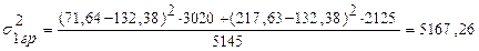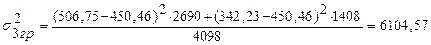 По всем трем группам от неучтенных факторов по подгруппам вариация себестоимости составляет ±91,87р. Общая дисперсия