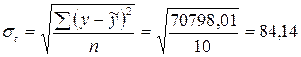 Кривая на рис.3 показывает, что себестоимость яиц в 1992-2001гг. ежегодно увеличивалась (в среднем) на 65,38р. Основная тенденция (тренд) показывает, как воздействуют систематические факторы на уровень ряда динамики, а колебание уровней около тренда служит мерой воздействия остаточных факторов. Её можно измерить по формуле среднего квадратического отклонения: