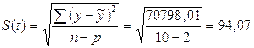 При выравнивании объединяются эти две формулы и формула средней ошибки прогноза для линии тренда на 2003г от середины базы прогноза выглядит так: